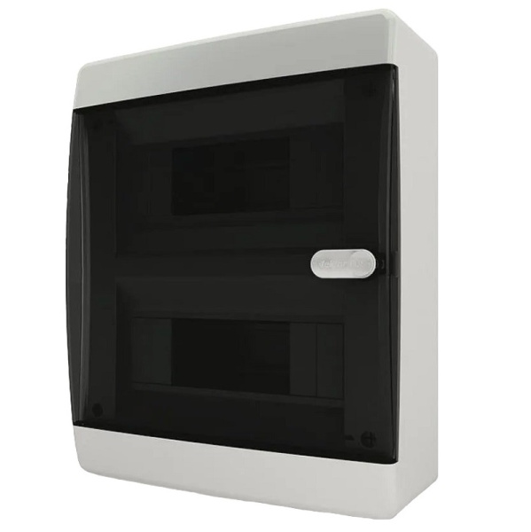 Бокс для открытого монтажа с прозрачной затемненной дверцей.