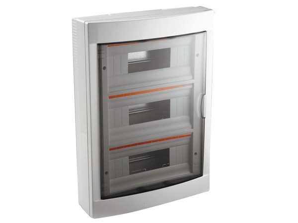 Бокс VIKO накладной на 36 модулей пластиковый модульный с дверцей из органического стекла предназначен для установки автоматических выключателей, устройств защитного отключения и других изделий, крепление на DIN рейку. Долговечный материал – прочный АБС пластик, износоустойчивость к механическим воздействиям, на поверхности никогда не остается царапин. Дверцы из темного органического стекла позволяют наблюдать за состоянием приборов даже не открывая дверцы. Вместительный корпус: пространство для размещения кабелей, позволяющее соблюдать нормированный радиус изгиба; возможность размещения кабелей за монтажными рейками.