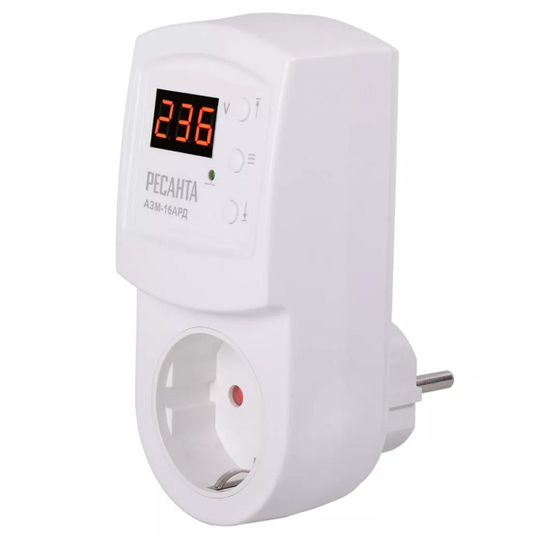 Реле напряжения АЗМ 16AРД регулируемый (с дисплеем, в розетку) Ресанта