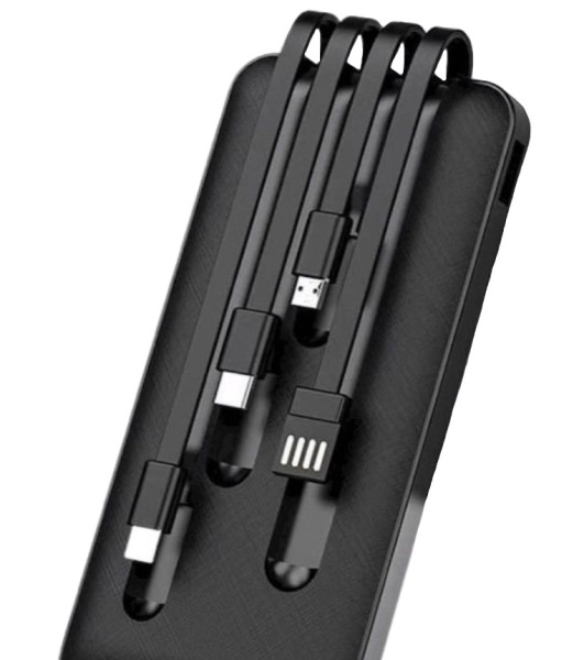 Powerbank 10000 мАч Портативное зарядное устройство большой емкости 4 автономных зарядных провода 10000 мАч Автономный с 4 проводами: iPhone, Micro USB, Type C и USB зарядные провода. Не нужны дополнительные кабели для зарядки.