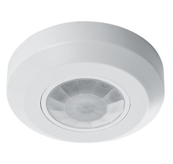 Датчик движения и освещенности SEN17 инфракрасный, потолочный, IP20, 230V, 400, расстояние обнаружения 8м, угол обнаружения 120°(гориз.), 360°(верт.), с регулировкой освещенности и времени задержки, цвет белый, 76*76*20,2мм.