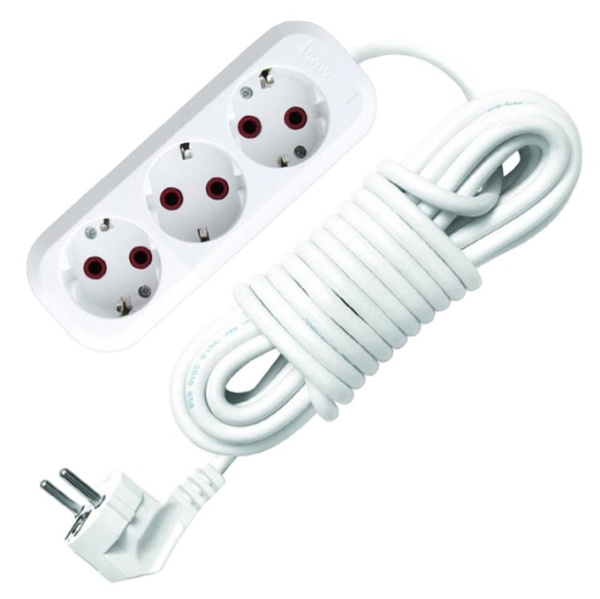 Удлинитель У10-554 ПВС 3x0.75 3 гнезда 5 метров Universal 554-05 с заземляющим контактом служит для использования внутри закрытых помещений для удаленного подключения бытовых электроприборов. Изделие выдерживает максимальную суммарную нагрузку до 2200Вт, одновременно можно подсоединить до трех устройств.