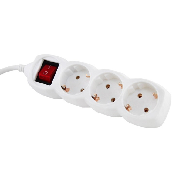 Удлинитель бытовой с выключателем, 3 гнезда, 3 метра с заземлением ПВС 3Х1ММ2 16А/250В TDM