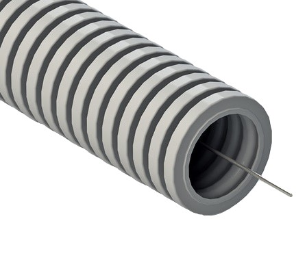 Гибкая гофрированная труба из ПВХ надежно защищает кабель от механических воздействий. Используется для прокладки электрического, компьютерного телефонного кабелей. Труба этого типа прокладывается в стенных штробах, в пустотах фальш-потолков и фальш-стен, в стяжке полов или под фальш-полами. Проволочная протяжка облегчает прокладку кабеля в трубе. Диаметр - 16 мм. Материал – самозатухающий поливинилохлорид (ПВХ). Цвет - серый. Гофрированные трубы из ПВХ легкой серии могут эксплуатироваться при температуре от – 25 °С до + 60 °С. Длина – 100 метров. Степень защиты IP55.