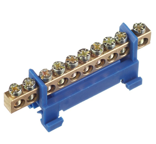 Шина нулевая изолированная с DIN-изолятором типа «Стойка» предназначена для электрического и механического соединения нулевых рабочих и нулевых защитных проводников. Выполнены из латунной шины, установленной на пластиковый изолятор, изготовленный из самозатухающего пластика. Используется для удобного монтажа в распределительных щитах, шкафах управления и другого электротехнического оборудования.