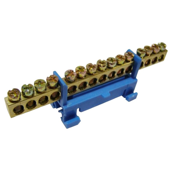 Шина нулевая 15 контактов в корпусе на дин-рейку синяя