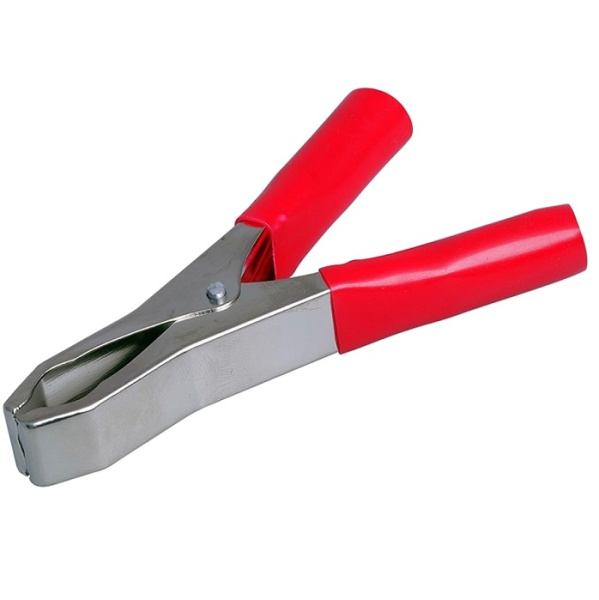 Зажим "крокодил" представляет собой электромеханическое устройство, предназначенное для оперативного соединения или разъединения контакта проводов при выполнении измерительных работ или монтажа электрических и слаботочных сетей. Зажим получил свое название за схожесть с челюстями крокодила. Состоит он из двух фигурных деталей с «крокодильими» зубцами, скрепленных серединами специальным штифтом и способных поворачиваться на некоторый угол вокруг оси соединения. К одной из деталей монтируется контактный провод. Сжатие «челюстей» обеспечивается пружиной, вставленной с другой стороны штифта. Контактная часть изделия изготавливается из стали с никелированным покрытием. В целях безопасной эксплуатации зажима, ручки имеют изоляцию, изготовленную из ПВХ, что предохранит от поражения специалиста электрическим током.Чаще всего зажимы применяются парами черного и красного цвета. Общая длина зажима – 75мм; Максимально допустимая величина пропускаемой силы тока –15А. Цвет изолятора – красный/черный.