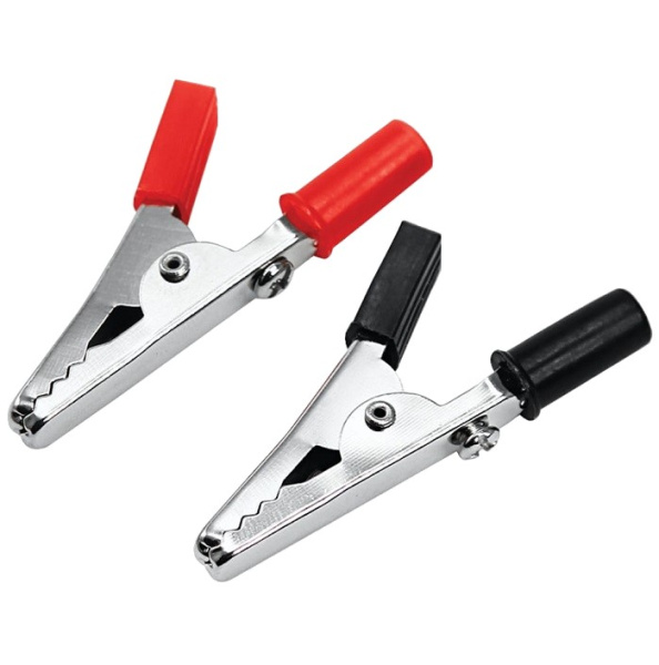 Зажим "крокодил" представляет собой электромеханическое устройство, предназначенное для оперативного соединения или разъединения контакта проводов при выполнении измерительных работ или монтажа электрических и слаботочных сетей. В целях безопасной эксплуатации зажима, ручки имеют изоляцию, изготовленную из ПВХ, что предохранит от поражения специалиста электрическим током. Чаще всего зажимы применяются парами черного и красного цвета.