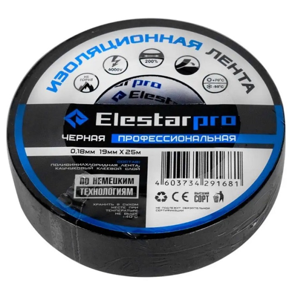 Изолента профессиональная черная 19мм х 25м ElestarPro