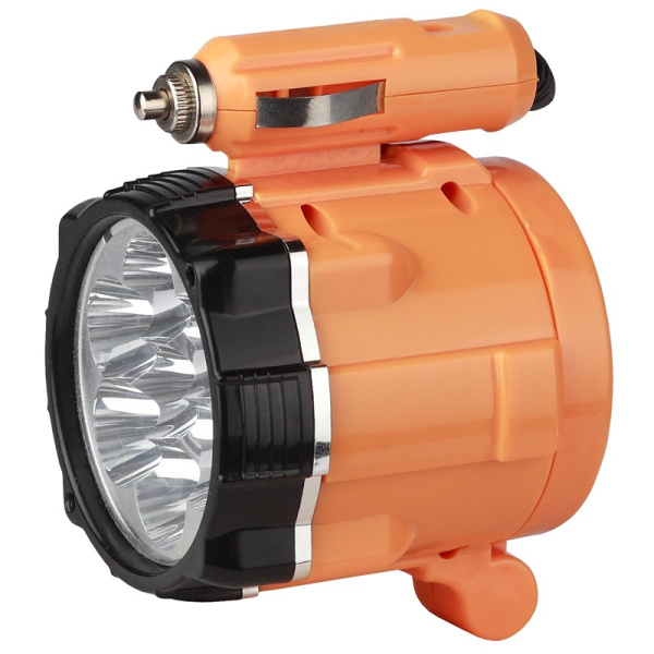 Автомобильный переносной фонарь. Световой поток осуществляется за счет 7 современных светодиодов. Имеется шнур для питания от прикуривателя, длиной 3 метра. Фонарь можно фиксировать под различным углом, благодаря магниту. Корпус изготовлен из ударопрочного пластика. Он отлично защищен от попадания влаги вовнутрь. Фонарь можно использовать на отдыхе и в быту.