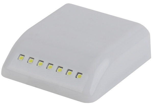 SB-404 светодиодный фонарь-подсветка, который сделает быт более комфортным. Быстро и просто устанавливается в кухонные, платяные или гардеробные шкафы. Крепится на самоклеящиеся липучки или болты, поставляемые в комплекте. В корпус из легкого прочного пластика встроены 7 ярких светодиодов, которые освещают 1 метр пространства. Работает от двух пальчиковых батареек (2 х АAА). Одного комплекта элементов питания хватает на 14 часов непрерывного свечения.