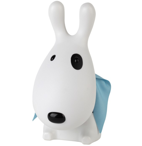 Встроенный аккумулятор для автономной работы. Съемный сетевой шнур длиной в комплекте. Светильник работает во время зарядки от сети. Два режима - максимальная яркость и приглушенный свет. Детский дизайн в виде собачки с мягким шарфиком на шее.