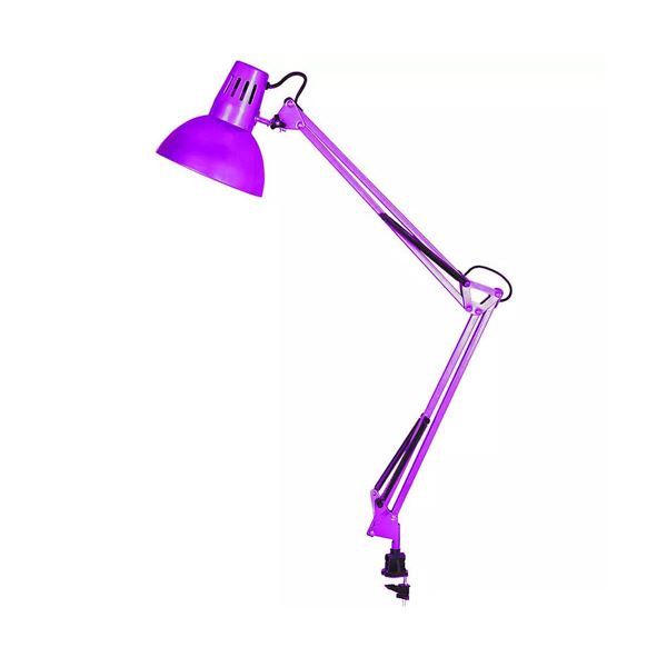 Настольный светильник, фиолетовый Camelion KD-312, 12341 изготовлен из прочного металла. Применяется как осветительный прибор на рабочем месте в офисе или дома. Оснащен двухколенной конструкцией корпуса для регулировки высоты и положения плафона. На основание светильника расположена струбцина для крепления его к столу или к полке. Патрон Е27 применяется с лампами накаливания, светодиодными или с энергосберегающими лампами. Длина шнура 1,6 м. Размеры, мм: 90х200х415.
