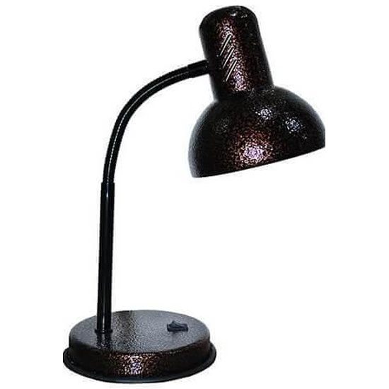Светильник настольный универсальная модель, предназначенная для освещения рабочего места, места чтения, учёбы. Может использоваться дома и в офисных интерьерах. Изготовлен из металла. Гибкая стойка в гофрированной пластиковой оболочке позволяет регулировать наклон плафона. Можно использовать с любыми типами ламп, в том числе со светодиодными. С выключателем на основании.
