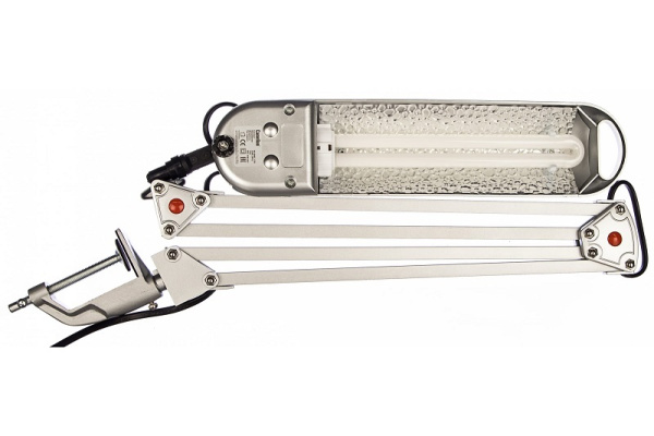 Настольный светильник на струбцине серебро Camelion KD-008С используется для дополнительного освещения или как основной источник света в офисе или дома. Корпус изготовлен из металла и пластика. Двухколенная конструкция позволяет регулировать положение светильника и менять наклон плафона, чтобы направлять свет под необходимым углом. Оснащен струбциной для крепления к столу. Светильник предназначен для использования с энергосберегающей лампой, цоколем 2G7.