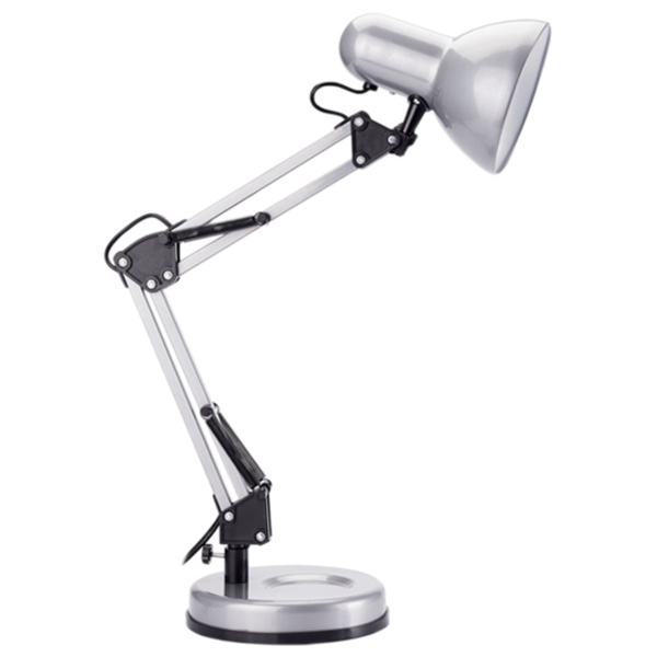Настольный светильник, серебро Camelion KD-313 11000 применяется для освещения рабочего места дома или в офисе. Изготовлен из прочного металла. Оснащен двухколенной конструкцией для регулировки высоты и положения плафона, что позволяет направлять свет под нужным углом. Цоколь Е27 работает как с лампами накаливания, так и с энергосберегающими и светодиодными лампами. Длина шнура 1,6 м. Размеры, мм: 170х170х285.