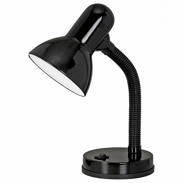 Светильник настольный универсальная модель, предназначенная для освещения рабочего места , места чтения, учёбы. Может использоваться дома и в офисных интерьерах. Изготовлен из металла. Гибкая стойка в гофрированной пластиковой оболочке позволяет регулировать наклон плафона. Можно использовать с любыми типами ламп, в том числе со светодиодными. С выключателем на основании.