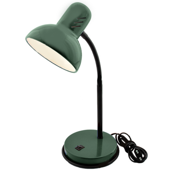 Светильник настольный универсальная модель, предназначенная для освещения рабочего места , места чтения, учёбы. Может использоваться дома и в офисных интерьерах. Изготовлен из металла. Гибкая стойка в гофрированной пластиковой оболочке позволяет регулировать наклон плафона. Можно использовать с любыми типами ламп, в том числе со светодиодными. С выключателем на основании.