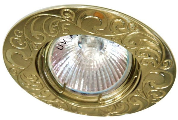 Светильник потолочный встраиваемый (ИВО) FERON DL2005, классика MR16 G5.3, золото, круг, 90*90*25мм, монтажное отверстие 75мм, поворотный.