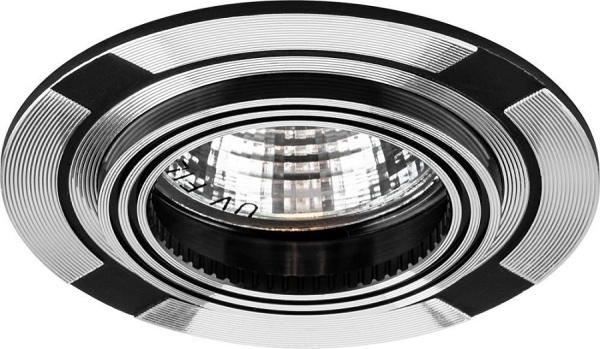 Светильник потолочный встраиваемый (ИВО) FERON DL239, под лампу MR16 G5.3, черный-алюминий, круг, 80*80*25мм, монтажное отверстие 65мм, неповоротный.