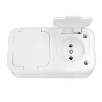 Розетка двухместная брызгозащищенная с крышкой открытой установки. Номинальный ток нагрузки 16А. Напряжение сети 250В. Степень защиты IP 44. Габаритные размеры 134*73*54мм. Предназначены для присоединения бытовых электроприборов к электрической сети переменного тока.