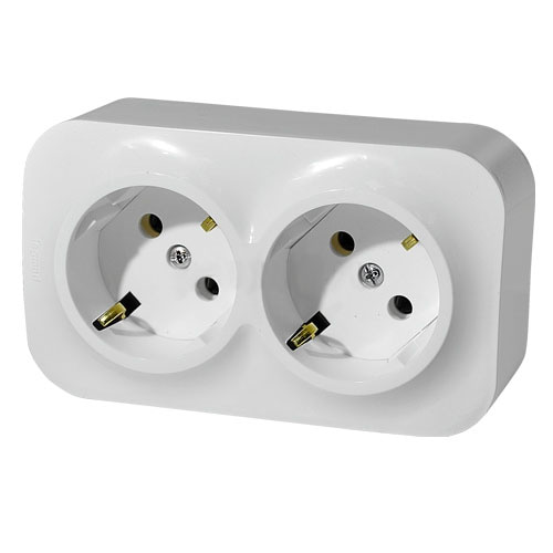 Двойная розетка с заземлением Legrand Quteo цвет белый для открытого монтажа. Максимальный ток 16 А, максимальная мощность 3680 Вт. Применяется в зданиях, оборудованных для повышения безопасности проводкой с заземлением (с защитным проводником). Зажимы для присоединения проводников винтовые, с невыпадающими винтами. Исключают потерю винтов при монтаже. Современный формат накладного монтажа. Ударопрочность по стандарту EN 50102-IK04. Специальное питание - не требует специального питания. Розетка двухместная с заземлением и защитными шторками, 16А, IP20. Для накладного (настенного) монтажа.