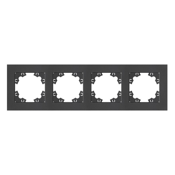Рамка четырехместная графит А0046-Gr обладает классическим дизайном, служит для оформления розеток и включателей. Придает электротехническим устройствам завершенный вид.