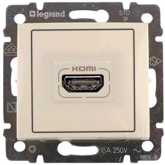 Розетка HDMI СЛНК VLN, арт. 774185 Legrand Назначение: Используется при монтаже механизмов Valena. Выполняют декоративную функцию. Общие характеристики: Механизмы Valena Розетки аудио/видеоустройств Механизмы, поставляемые с лицевыми панелями, для установки с рамками Монтаж на винтах или захватах Розетки аудио и видеоустройств.