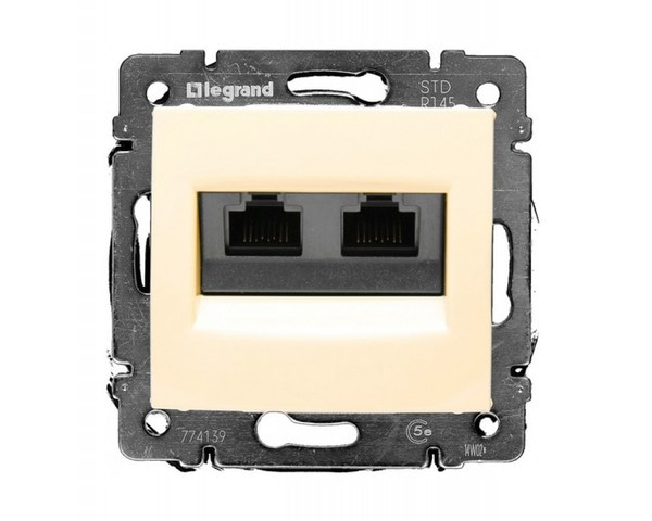 Розетка компьютерная двойная (информационная) Legrand Valena Classic RJ45 UTP скрытого монтажа цвет слоновая кость. Предназначена для быстрого подключения к информационным сетям категории 5e. Позволяет подключить к одной розетке подключить одновременно два устройства. Обладает двумя разъемами RJ45 UTP 5 кат и винтовым креплением без лапок. Металлический механизм обладает износостойкостью и безопасностью применения. Накладка изготовлена из ударопрочного термопласта стойкого к ультрафиолетовому излучению.