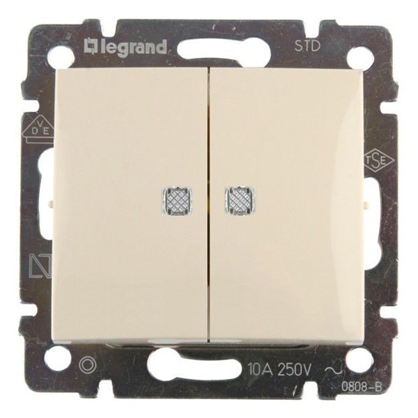 Двухклавишный выключатель с подсветкой слоновая кость Legrand Valena 774328 служит для включения или выключения света в помещении. Используется для скрытой проводки. Две клавиши позволяют управлять несколькими цепями одновременно. Металлический механизм и накладка из термопласта обладают прочностью и долгим сроком службы. Подсветка поможет без труда ориентироваться в темноте. Механизмы, поставляемые с лицевыми панелями, для установки с рамками, безвинтовые зажимы, 10 AX – 250 В~
