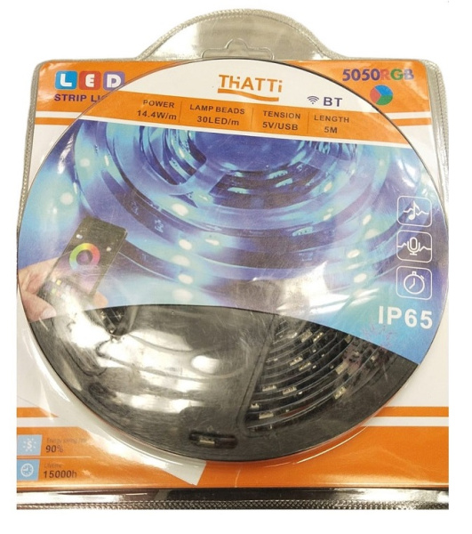 Лента светодиодная RGB 5v/USB Bluetooth 14.4Вт 5м THATTI